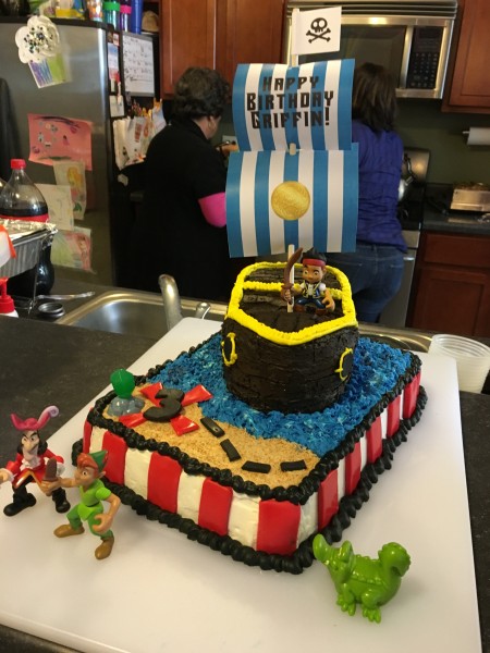 March 2016 cake for my nephew & godson Griffin. I had never heard of Jake and the Neverland Pirates before this... Still haven't seen the show, but he was excited for this cake!